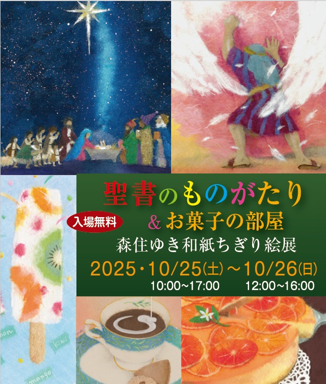今月10月25日(土)と26日(日)に当教会にて「森住ゆき和紙ちぎり絵展」を開催します。